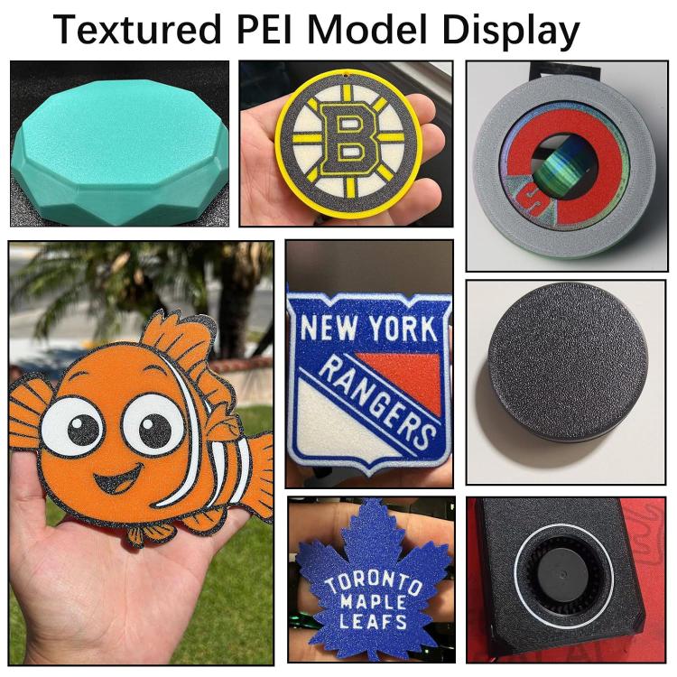 4. Filamenti compatibili: la superficie della pellicola è liscia e facile da pulire e può aderire bene a vari materiali di consumo.La superficie del rivestimento in PEI ha una texture opaca e può stampare materiali come PLA/ABS/PETG/TPU/nylon.
