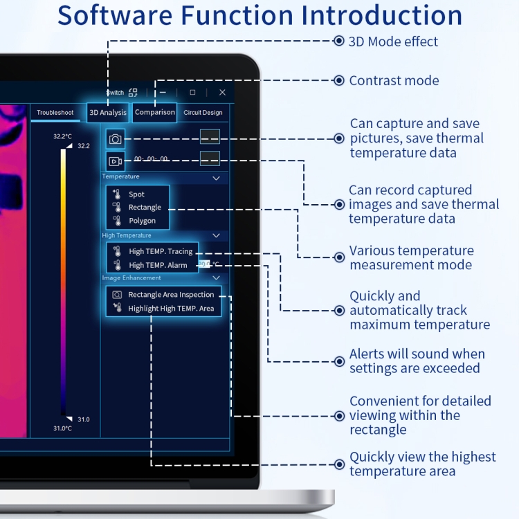 1. Individua rapidamente aree ad alta temperatura, tavolozza dei colori dei componenti a temperatura anormalmente alta e intervallo di stabilità di regolazione, posizionamento del cortocircuito