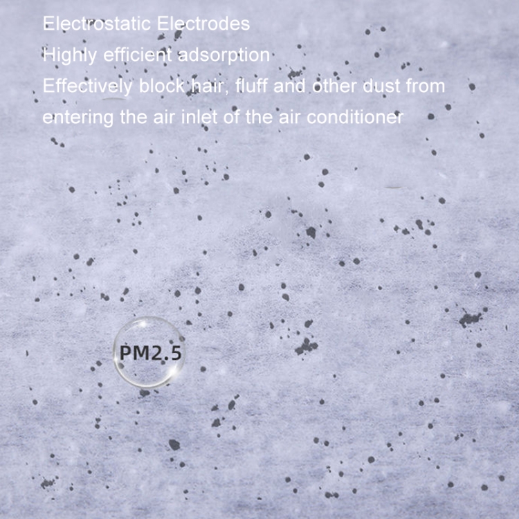 2. Elettrete elettrostatica, adsorbimento altamente efficiente, blocca efficacemente capelli, detriti e altra polvere dall’ingresso dell’aria condizionata