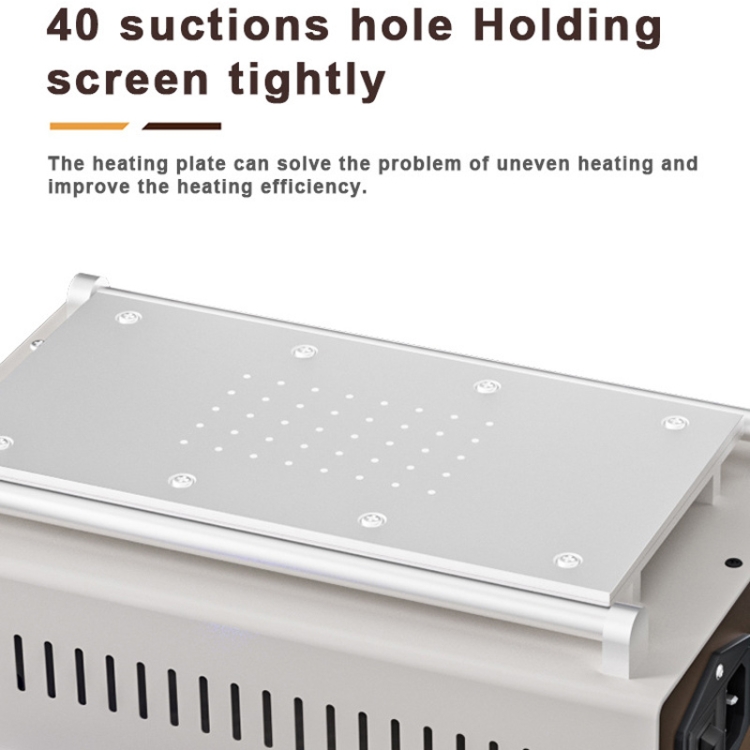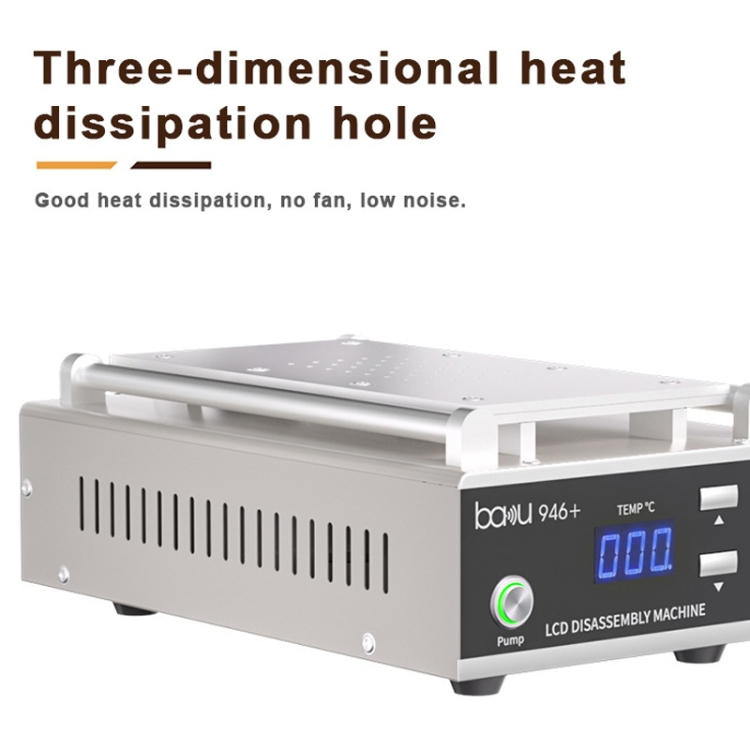 2. Separazione efficace tra vetro e schermo LCD.Il BA-946+ è progettato pensando alla massima efficienza di distribuzione del vetro e dello schermo LCD.Ciò aiuta a semplificare e accelerare il processo di riparazione delle apparecchiature.