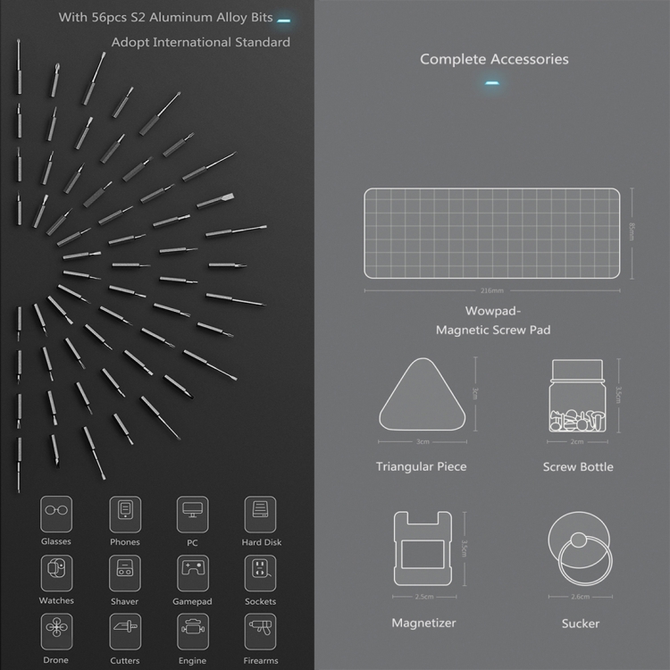 1. Xiaomi Mini Wowstick 1F + cacciavite elettrico, con 56 pezzi di viti.
