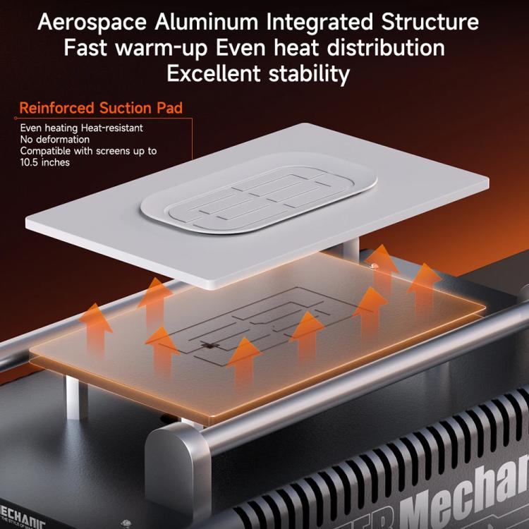 4. Ventosa rinforzata, riscaldamento uniforme, resistente al calore, nessuna deformazione, compatibile con schermi fino a 10,5 pollici