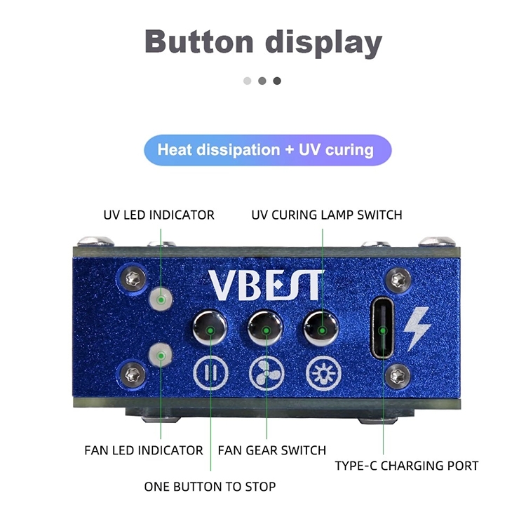 2. Funzione di polimerizzazione: la luce di polimerizzazione UV integrata può essere utilizzata per la polimerizzazione rapida di colla, materiali fotosensibili, ecc., rendendola adatta per operazioni di polimerizzazione di precisione come le riparazioni del telefono.
