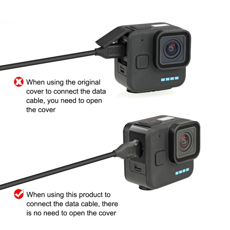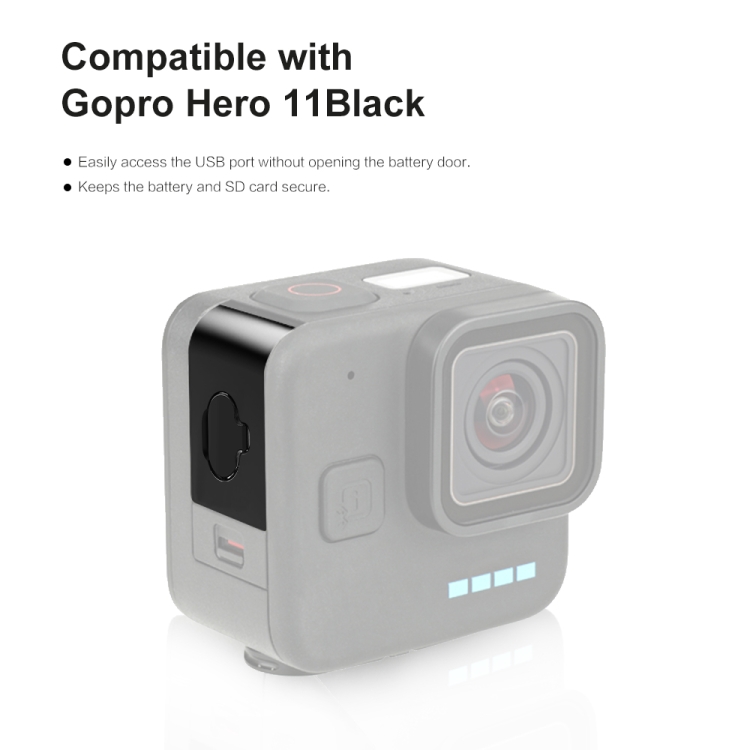 1. La porta passante per la ricarica USB con coperchio è appositamente progettata per GoPro Hero11 Black mini, garantendo che la fotocamera possa essere caricata durante le riprese a lungo termine.