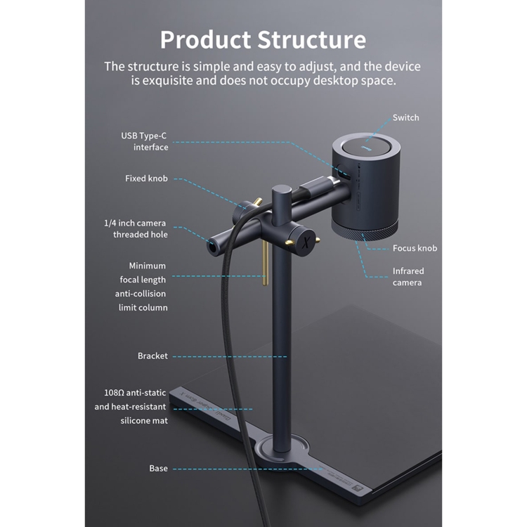 1. Può regolare l’angolo della fotocamera leggera visibile