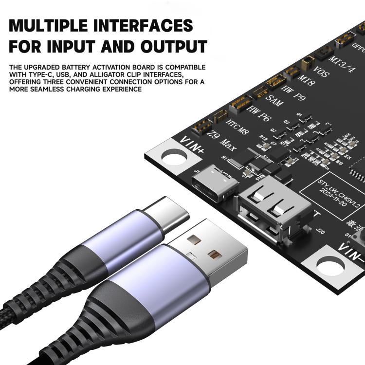 6. La scheda di attivazione della batteria aggiornata è compatibile con Type-C, USB e coccodrillo