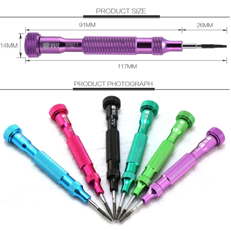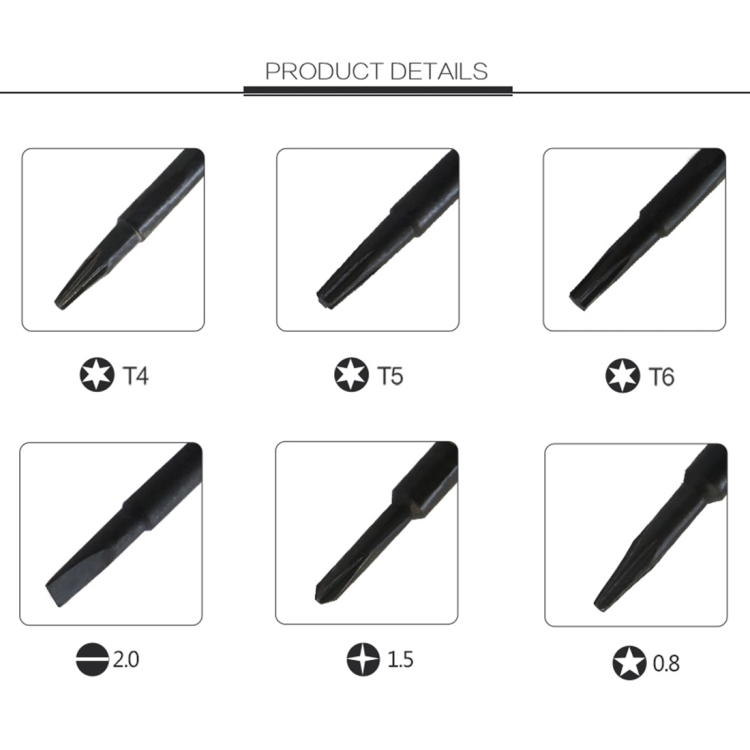 6. Dimensioni del cacciavite: T4 / T5 / T6 / 2,0 / 1,5 / 0,8