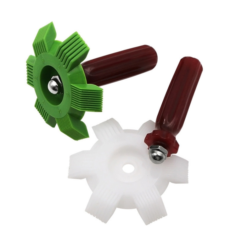 4. Ogni petalo sullo strumento è contrassegnato con la dimensione appropriata in alette per pollice.Lo strumento può gestire 8, 9, 10, 12, 14 e 15 pinne per pollice