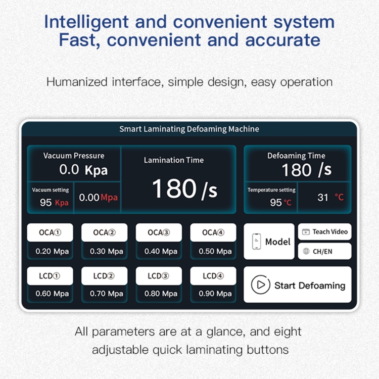 1. Macchina integrata di laminazione e antischiuma intelligente, cilindro a stelo largo 125 mm, le quattro aste di guida si adattano perfettamente, magazzino integrato di grande capacità da 15 pollici
