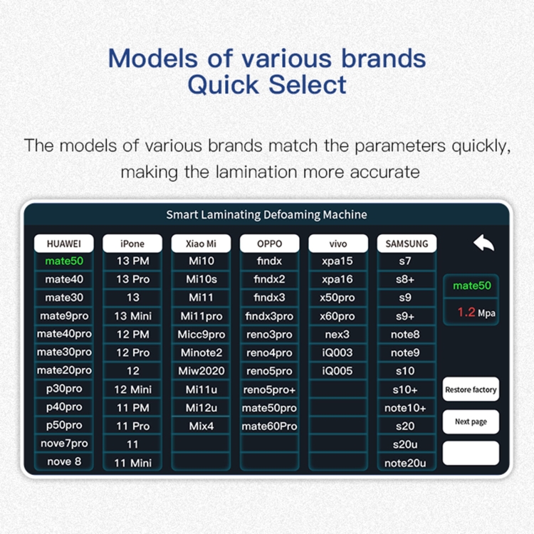 9. Modelli di varie marche, selezione rapida, i modelli di varie marche corrispondono rapidamente ai parametri, rendendo la laminazione più accurata