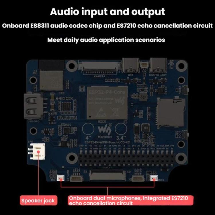 8. Chip codec audio ES8311 integrato e circuito di cancellazione dell’eco ES7210, adatti agli scenari applicativi audio quotidiani.