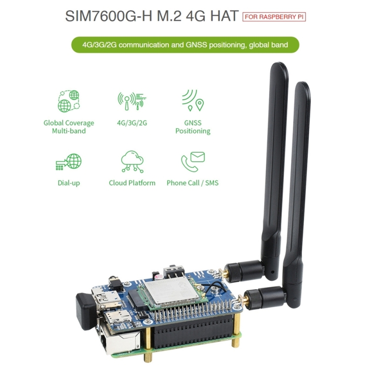 1. Questo è un cappello di comunicazione Raspberry PI 4G/3G/2G con posizionamento GNSS e connessione a banda globale LTE Cat4 ad alta velocità. Collegandolo a schede host PC, Raspberry Pi o Jetson Nano, è facile abilitare networking ad alta velocità 4G, comunicazione della piattaforma cloud, telefonate/SMS e funzioni di posizionamento GNSS globali.