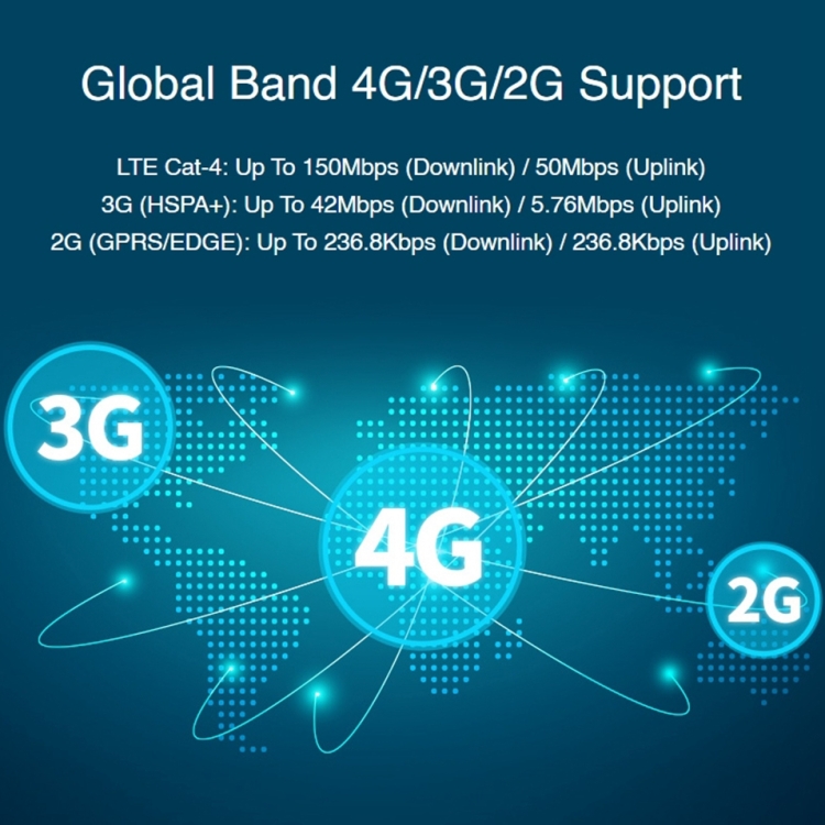 1. LTE CAT-4: LTE-FDD: B1, B2, B3, B4, B5, B7, B8, B12, B13, B18, B19, B20, B25, B26, B28, B66