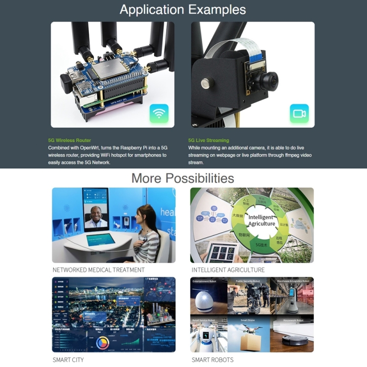 2. Application examples: CPE, Smart gateway, Drone, Live streaming, Remote treatment, Intelligent security